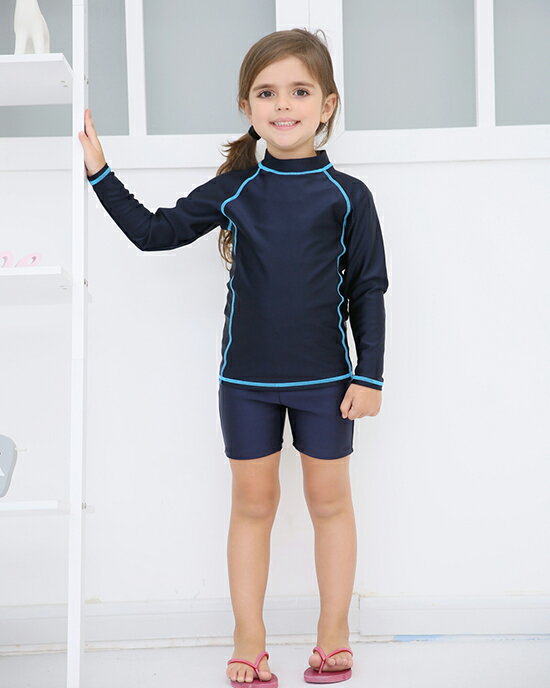 ■キッズスクール水着(長袖) 伸縮性がありしっかりとした生地感です。