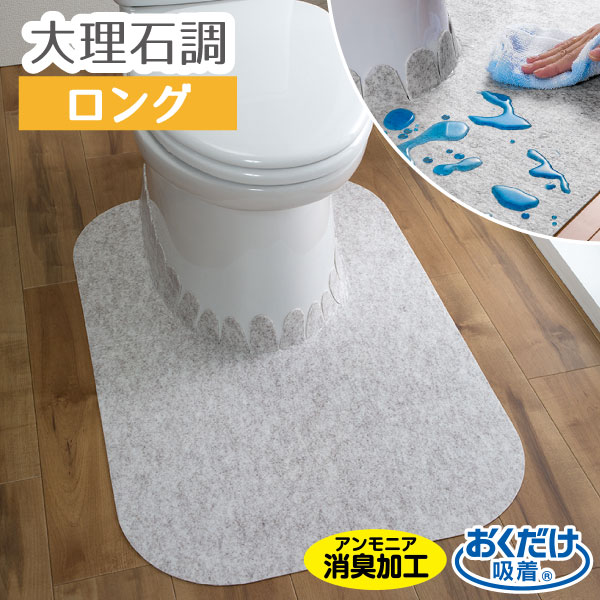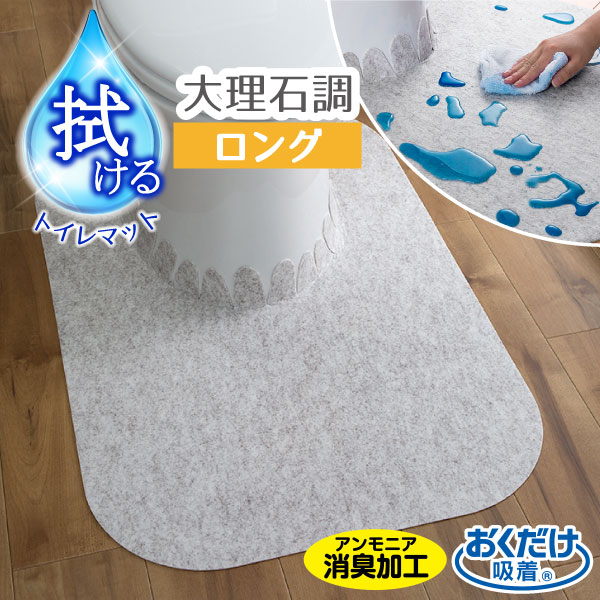 大理石調トイレマット ロング KO-39/おくだけ 置くだけ 吸着 ズレない バリアフリー マット 滑り止め 撥水 加工 薄い 拭ける 拭くだけ シンプル 大理石 大理石調 オシャレ 大理石柄 グレー トイレ トイレマット 消臭