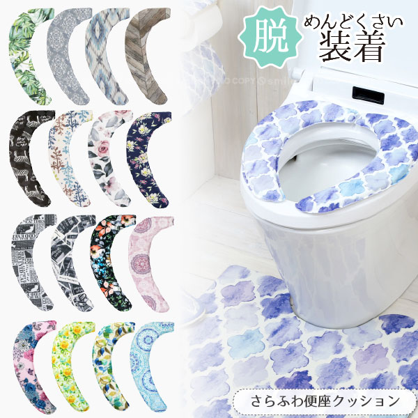 さわふわ便座クッション /トイレ クッション 吸着 便座 ファブリック 便座 カバー シート 貼る 洗える 洗濯可 洗濯機 丸洗い 置くだけ吸着 ふんわり 厚手 U型 O型 洗浄 暖房型 ウォシュレット かわいい おしゃれ 総柄 デザイン シリーズ