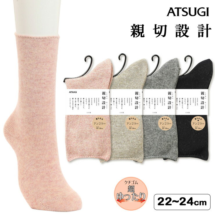 レディース ソックス ATSUGI 親切設計(JS89072)アンゴラ入り 滑り止め付き靴下 滑り止め ソックス アツギ atsugi 靴下 レディース クルーソックス アンゴラ 締め付けない靴下 しめつけない 靴下 履き口 ゆったり 靴下 介護 靴下 あったか 暖かい(03268)