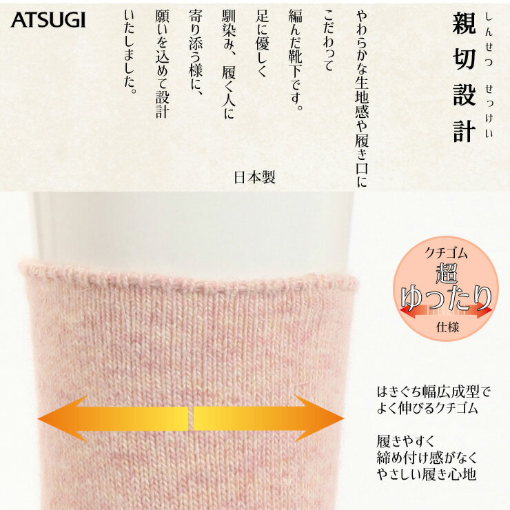 素材 アンゴラ、アクリル、ナイロン、その他 サイズ 22〜24cm 特徴 アツギ・親切設計 やわらかな生地感や履き口にこだわって編んだ靴下ブランドです。