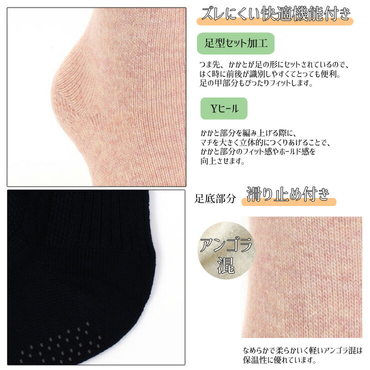 履きやすく締め付け感がなく やさしい履き心地 ●足底滑り止め付き ●アンゴラ混 なめらかで柔らかいく軽いアンゴラ混は保温性に優れています。